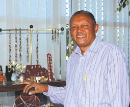 Il s’agit de Henri Andrianasolo Razafindralambo, plus connu sous le pseudonyme de Ralambo. Spécialiste en lapidairerie, cet artiste qui a derrière lui près de quatre décennies d’expériences y dévoile ses nombreux objets de décoration mettant principalement en valeur les pierres de décoration. Pour cet artiste, les livres, les magazines et les films documentaires constituent une source intarissable d’inspiration puisque cet art évolue dans le temps et dans l’espace.
