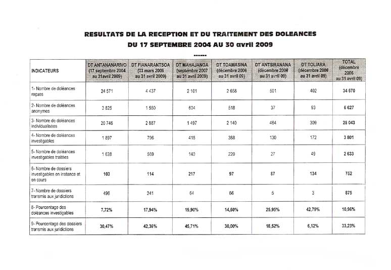 En un peu moins de 4 ans d’existence, le Bianco a reçu 34 670 doléances. 2 633 doléances ont pu être investiguées, et 875 dossiers ont été transmis aux autorités judiciaires.