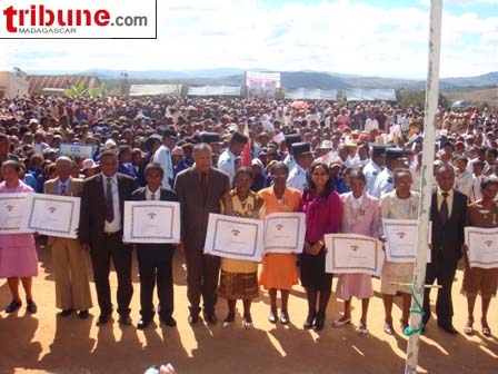 À part le terrain de football, il y a eu aussi une inauguration de barrage d’irrigation. Mais cette infrastructure est le fruit de la collaboration du ministère de l’Aménagement du territoire et de celui de l’agriculture. Une infrastructure d’une valeur de 34 millions d’ariary, qui a vu aussi la participation des bénéficiaires. Il y a eu également une construction de trois CEG, qui a aussi vu la collaboration entre le ministère de l’aménagement du territoire et le ministère de l’enseignement national. Il y a aussi l’adduction d’eau potable dans trois fokontany de la commune. Et pour couronner le tout, il y a eu une inauguration de pont - passerelle et d’un « centre de ressource pédagogique ».
