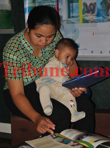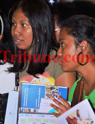 Des écoles et instituts ont organisé des visites pour leurs étudiants. Tel fut le cas du Lycée français pris dans notre objectif par exemple. En fait, tout le monde, jeunes surtout, et même les jeunes mères de famille était intéressé. Tous voulaient disposer de tous les prospectus et se sont pliés à faire la queue. Tout cela dans le calme et le silence devient cathédrale quand des responsables de stand expliquent comme sur le stand des États-Unis ; ils étaient tout ouïe devant Fidy.