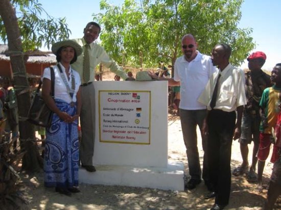 Le chef de la Région Boeny a mis en exergue la réussite d’une coopération de la Région avec les autres entités en disant que « c’est la première fois dans notre histoire qu’on voit une coopération financière multipartite sur le même site… Une coopération entre l’Ambassade d’Allemagne, École du Monde, le Rotary Club de Mahajanga, et la DREN Boeny ».
