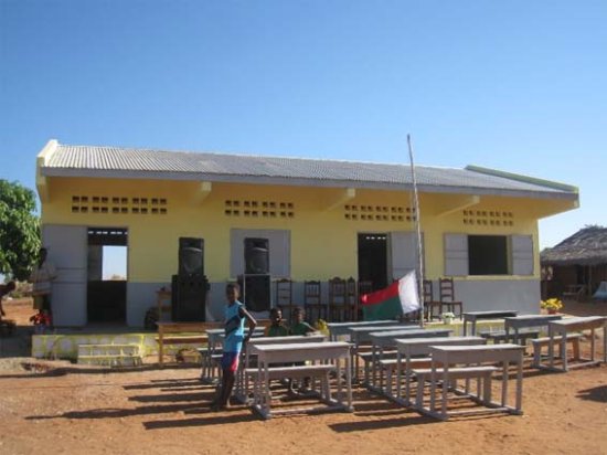 Un bâtiment scolaire de 5 m de large sur 12 m de long comportant deux salles de classe a été inauguré le lundi 27 Septembre 2010 dernier à Andriambato, commune rurale d’Antanambao Andranolava, district de Marovoay. C’est le fruit d’une coopération entre la Région Boeny et l’Ambassade d’Allemagne. Le chef de la Région Boeny Rasoloniaina Jean Christophe Noël est venu honorer la cérémonie d’inauguration de cette nouvelle infrastructure avec le représentant de l’Ambassadeur d’Allemagne, Mr Wolfgang Siegel, premier secrétaire de l’Ambassade et de la présidente du Rotary Club de Mahajanga, Prisca Razafindrafahatra , du représentant de la DREN Boeny, Mr Mahafaka et des membres de l’ONG Mazava de Marovoay.