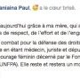 Et il a fallu que ce soient les NU & l’ ONU qui congratulent cette dame, son gouvernement étant juste à la hauteur pour : la mettre à l’ « écart » ?
