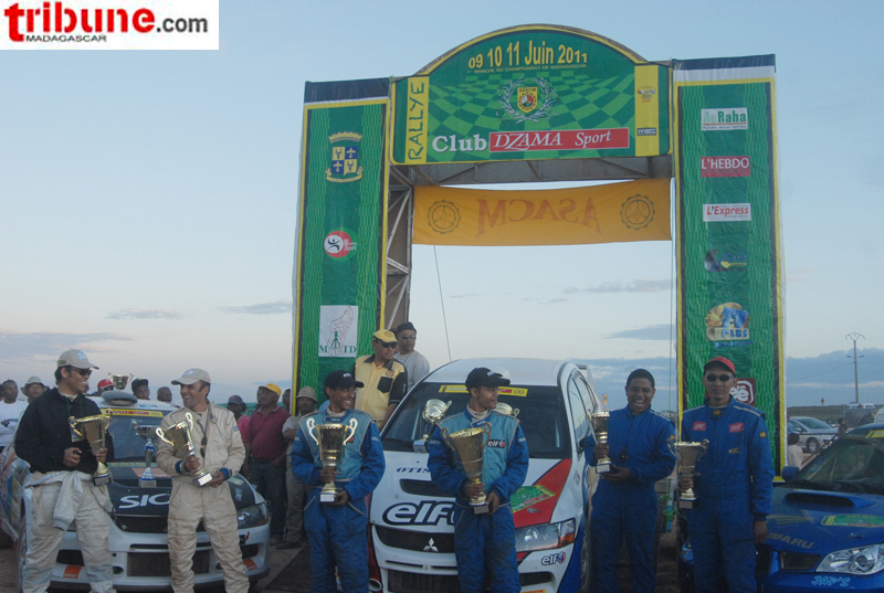 Après avoir mené de bout en bout, l’équipage Mathieu Andrianjafy - Tahina Rakotomalala, sur Mitsubishi Evo 9 précède Laza (Mitsubishi Evo 9) et Titi (Subaru Impreza N12). Cliquez sur les photos pour les agrandir.